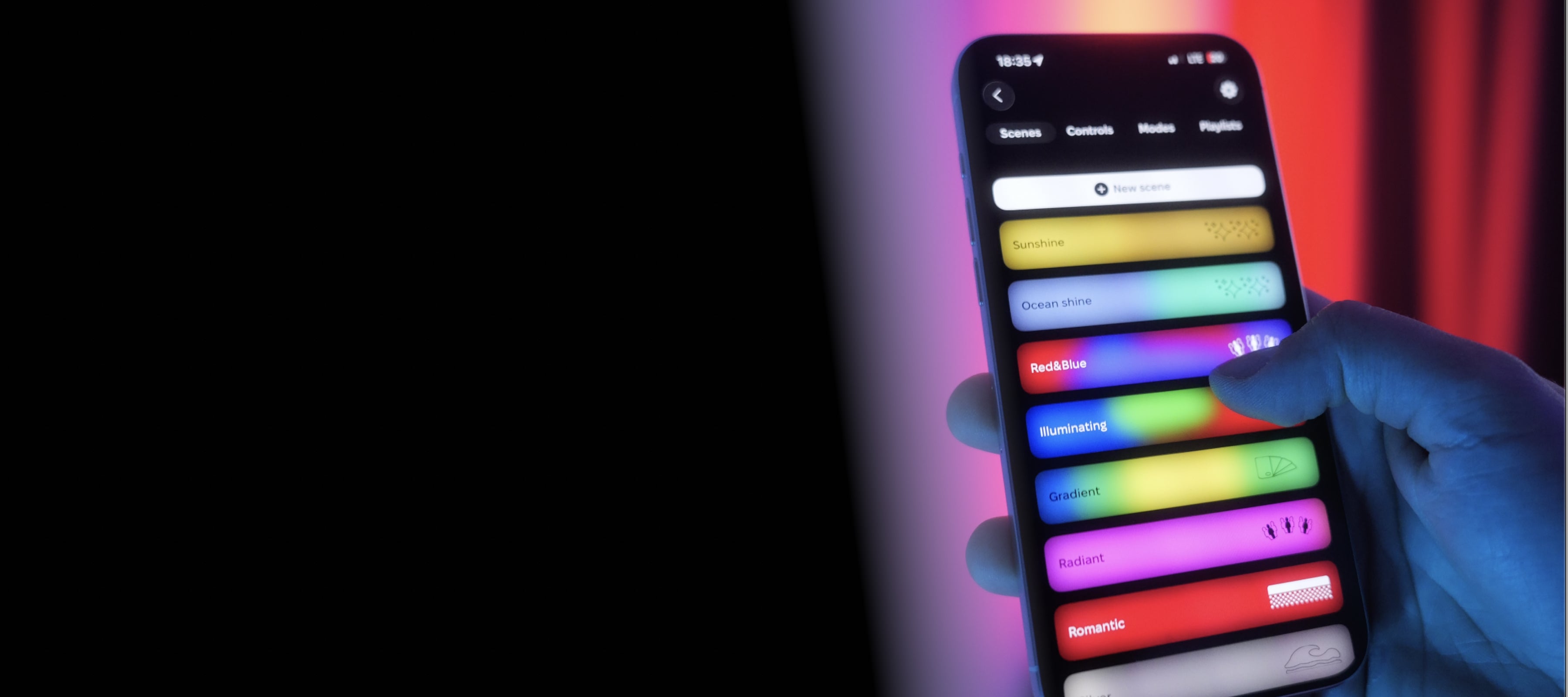 Створіть власні унікальні світлові сцени за допомогою мобільного додатка! Обирайте кольори, налаштовуйте яскравість і ефекти, зберігайте улюблені комбінації та миттєво змінюйте атмосферу в кімнаті. Ваше світло – ваш стиль!