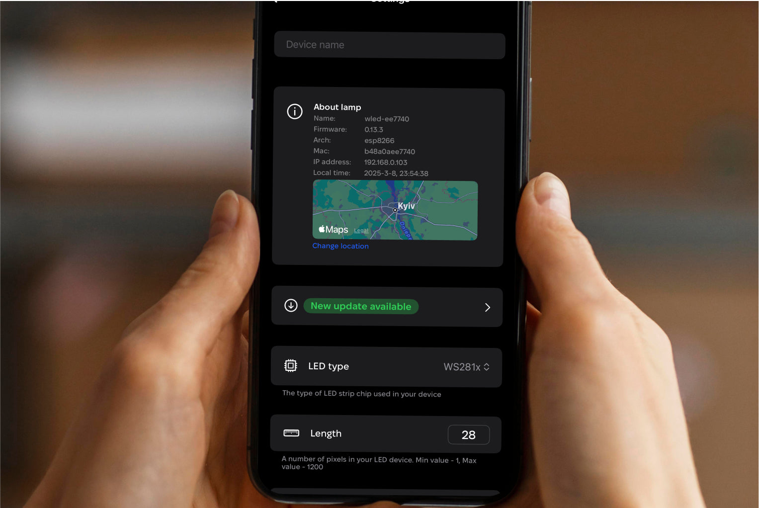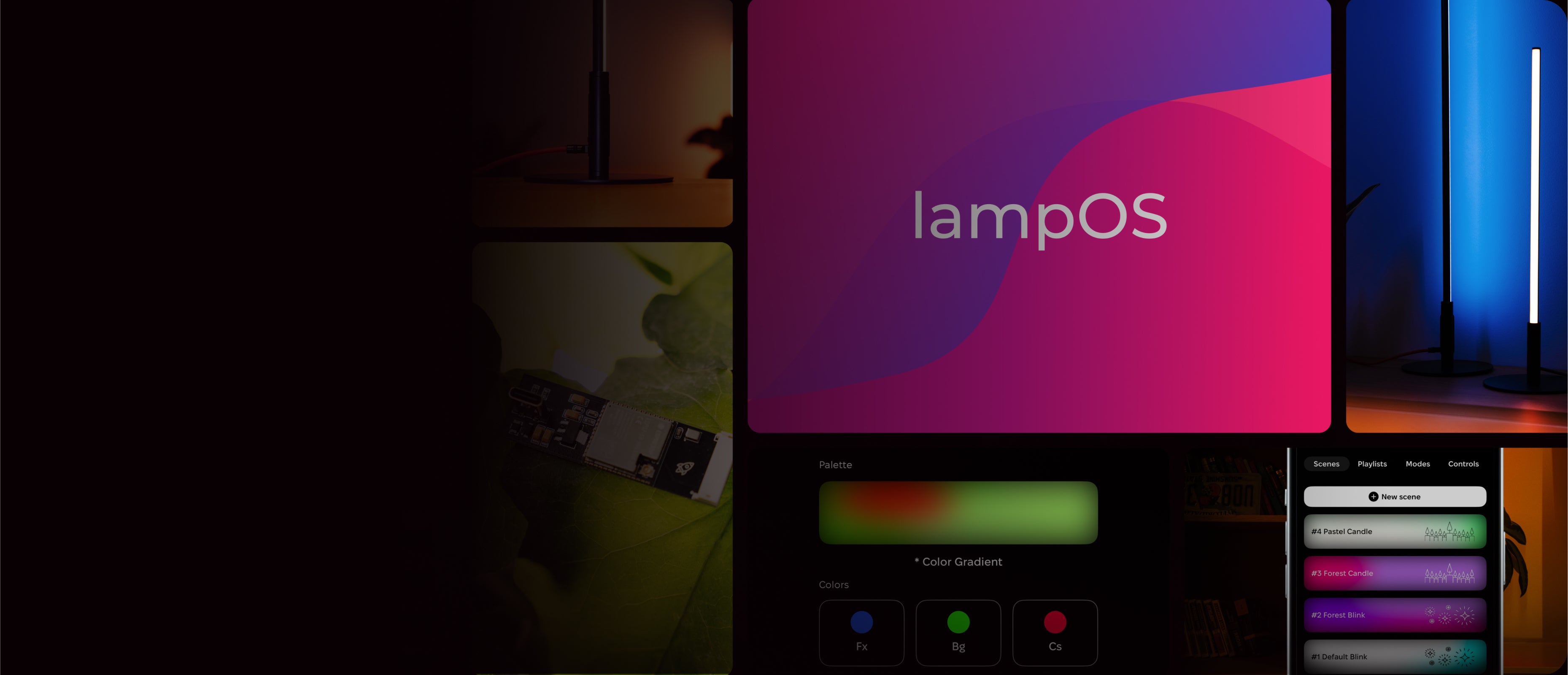 A smart firmware that adapts to your mood and lifestyle. Built on WLED and enhanced for seamless and fast lamp control, lampOS ensures a smooth user experience. Regular updates bring new features and expand lighting possibilities.